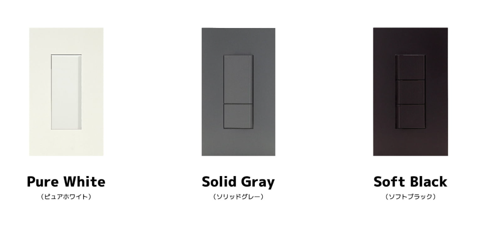 特に注目すべきは、カラーバリエーションの豊富さ。定番の白やアイボリーだけでなく、ブラックやグレーなどのダークカラーも選べます。あえてスイッチを目立たせてアクセントウォールと合わせたり、グレーや黒系の壁紙に統一感を持たせたりと、デザインの自由度が高いのが魅力です。