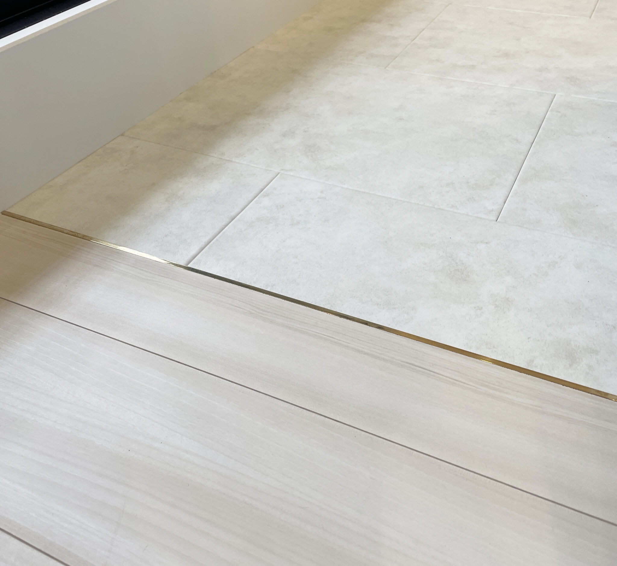 フロアタイル: カッターで簡単に切断でき、接着剤で貼ればすぐに歩行可能です。乾燥待ちの時間(養生期間)がほとんどないため、朝から工事を始めれば、夕方には新しい床の上で生活ができます。 騒音や粉塵もほとんど出ないため、マンションのリノベーションや、近隣への配慮が必要な現場でも安心して採用されます。また、厚みが2.5mm程度と非常に薄いため、リフォームの現場では今あるフローリングの上から重ねて貼る(上貼り)が可能です。ドアの開閉に干渉せず、廃材も出にくいです。