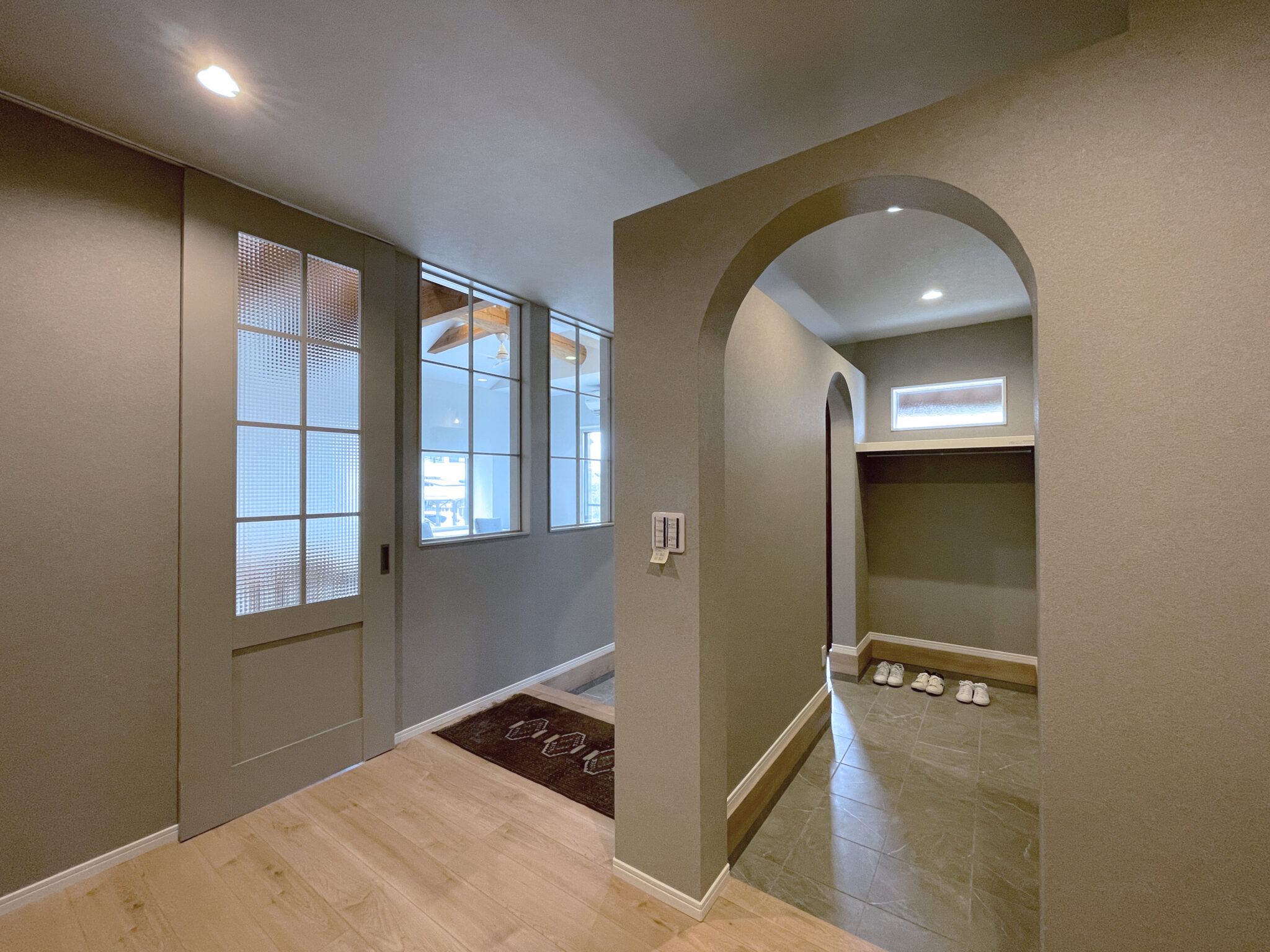 - 靴を脱ぐ→コートを掛ける→家に入るという流れが自然にでき、玄関ホールに靴が脱ぎっぱなしになるのを防げます。