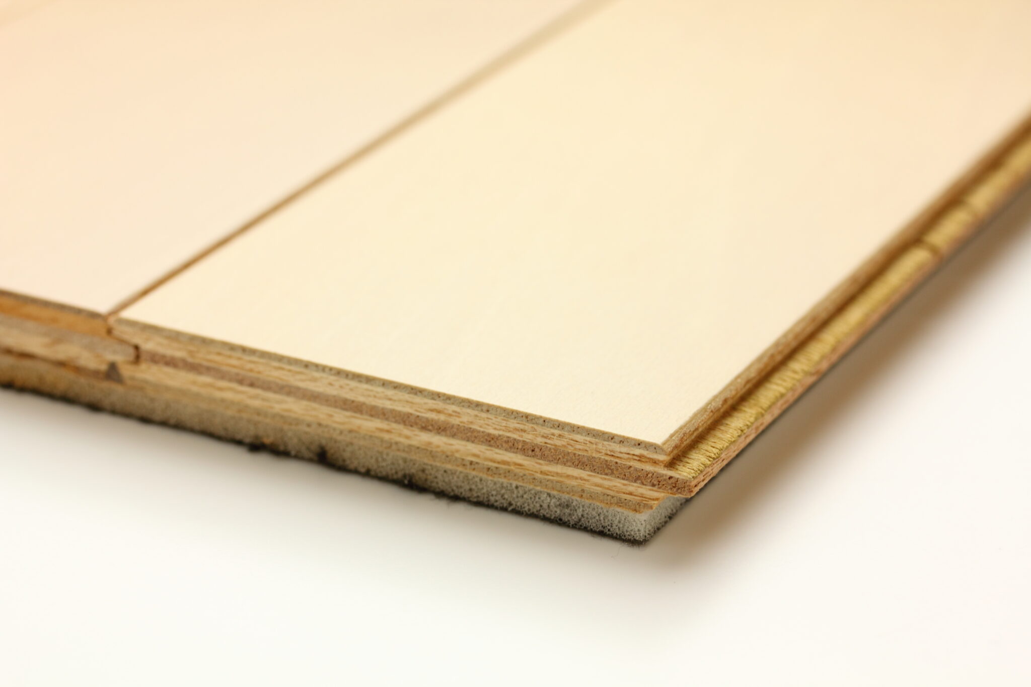 非常に重いものを落として数ミリ以上の深い傷がつくと、さすがに下の合板が見えてしまうことがあります。