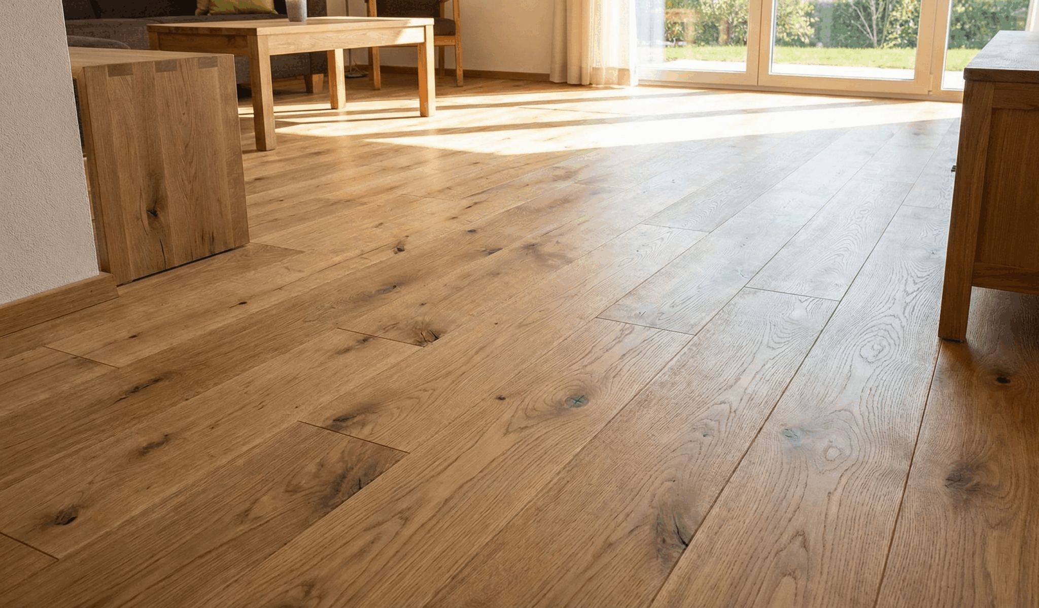 美しさを保つには、定期的なオイル塗装(1〜2年に1回程度)が必要です。※ウレタン塗装を選べばメンテナンスは不要になりますが、木の質感や調湿性は失われます。